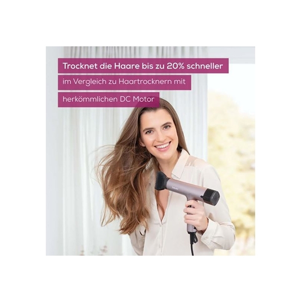 Der ultraleichte Fön trocknet Haare bis zu 20 % schneller als herkömmliche DC-Motor-Modelle.