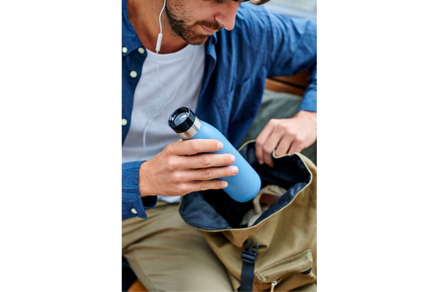 Ob beim Sport, im Park oder auf Reisen – die EMSA bludrop Aqua ist immer mit dabei. Die doppelwandige Edelstahlflasche mit Vakuumisolierung hält Wasser stundenlang angenehm kühl. Das robuste Powder-Coating im modischen Aqua macht sie zum sportlichen Hingucker. 100 % dicht, per Knopfdruck zu öffnen und mit 360°-Trinkkomfort von jeder Seite. So wird Trinken unterwegs nicht nur praktisch, sondern auch richtig stylisch und nachhaltig.