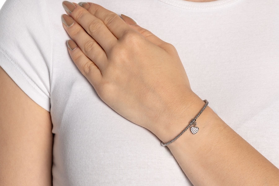 Herzliche Glitzermomente für die Hand: Das silberfarbene Armband aus der Ciao-Kollektion ist dein dezenter Begleiter für jeden Anlass. Harmonisch abgestimmte Edelstahlkugeln und ein funkelnder Herzanhänger sorgen für einen eleganten Look, der sich wunderbar kombinieren lässt. Das elastische Band bietet angenehmen Tragekomfort – ein zeitloses Must-have mit persönlicher Note.