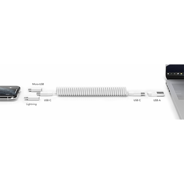 Das Spiralkabel ist bis zu 90 cm lang. So kann das Smartphone auch beim Laden verwendet werden. Das Kabel unterstützt eine schnelles Laden und einen zügigen Datentransfer mit bis zu 480 MBit pro Sekunde.