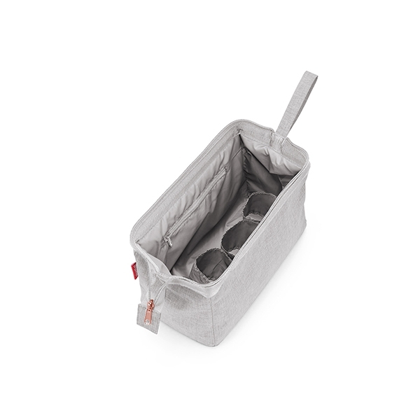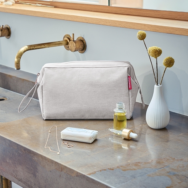 Der klassische Kulturbeutel travelcosmetic von Reisenthel überzeugt mit robusten Metallbügeln und einer praktischen Schlaufe. Auch bei unsanfter Handhabung durch Airlines bleibt er in Form.