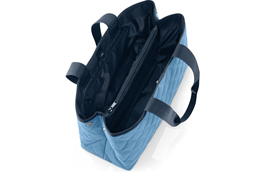 Der classic shopper L in Rhombus Blue kombiniert großzügiges Volumen mit modernem Design. Zwei Hauptfächer, ein mittiges Reißverschlussfach und zusätzliche Innenfächer sorgen für Ordnung bei all deinen täglichen Dingen. Das gesteppte Rautenmuster macht die Tasche formstabil und zu einem echten Styling-Statement. Robustes, recyceltes Material, wasserabweisend und ohne Leder – perfekt für nachhaltige Eleganz im Alltag. Trage ihn bequem über der Schulter oder in der Hand, ob beim Shopping, im Büro oder unterwegs.