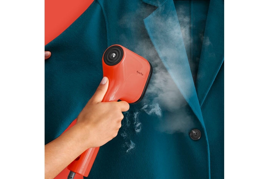 Mit der TEFAL Pure Pop Dampfbürste sieht jede Kleidung im Handumdrehen makellos aus. Das wendbare Pad-System vereint Fusselentferner und Samtseite für schonendes Glätten aller Stoffe – ohne Risiko. Ultrakompakt, leicht und in nur 15 Sekunden einsatzbereit, begleitet sie dich auf Reisen, ins Büro oder zu spontanen Events. Der desinfizierende Dampf erfrischt, reduziert Gerüche und sorgt für hygienische Textilien. Stylisch, modern und komfortabel in Korallrot – Textilpflege war noch nie so einfach und flexibel!