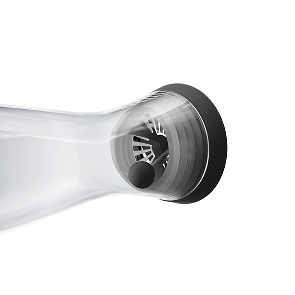 Das integrierte, praktische Sieb hält beim Schütten Eiswürfel, Fruchtstücke und Kräuter zuverlässig zurück, sodass das Wasser frisch und rein bleibt. Darüber hinaus lässt sich der Verschluss zur einfachen Reinigung vollständig zerlegen und ist spülmaschinenfest.